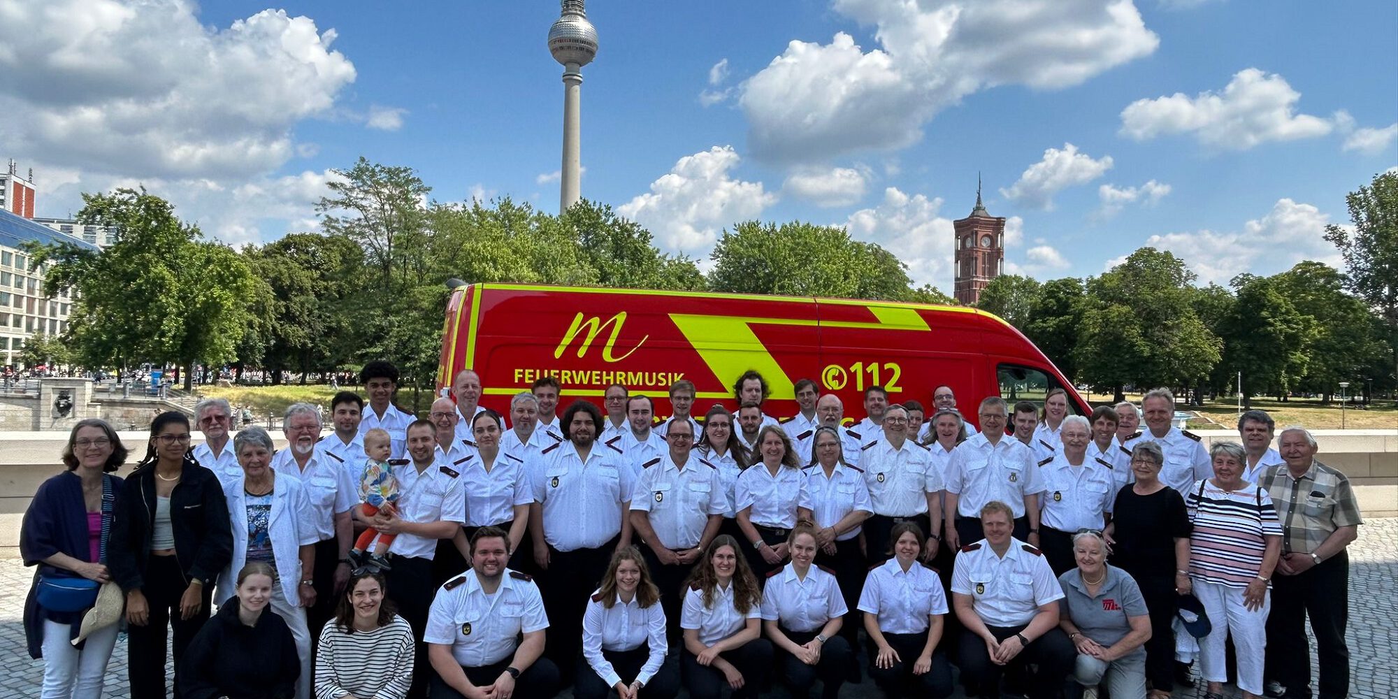 Die zweite Einladung kam von Dr. Karsten Homrighausen, als Landesbranddirektor Leiter der Berliner Feuerwehr. Aus seiner Zeit bei der Stuttgarter Feuerwehr immer noch freundschaftlich mit dem Musikzug verbunden, ermöglichte er den Musizierenden anlässlich des 172. Geburtstags der Feuerwehr Berlin, am Sonntag ein Ständchen vor dem Humboldt-Forum zu spielen. Das einstündige Platzkonzert mit Blick auf den Berliner Dom zog zahlreiche Besucher an, die das schöne Wetter für einen Spaziergang auf der Museumsinsel nutzten.